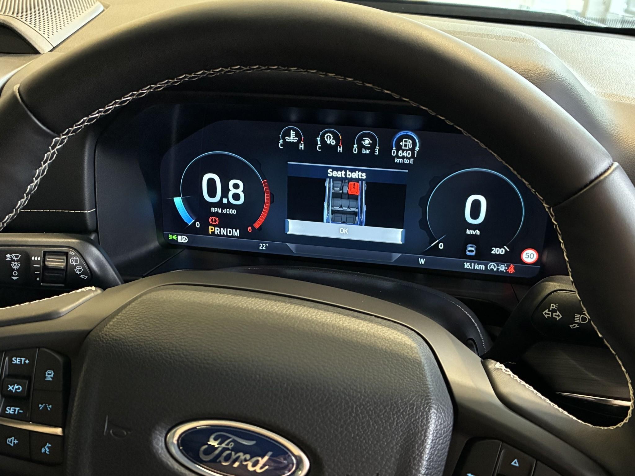 * Tech-Heavy Cockpit - Features a massive 12.4-inch digital instrument cluster and a 12-inch SYNC 4A portrait touchscreen with a 360-degree camera.